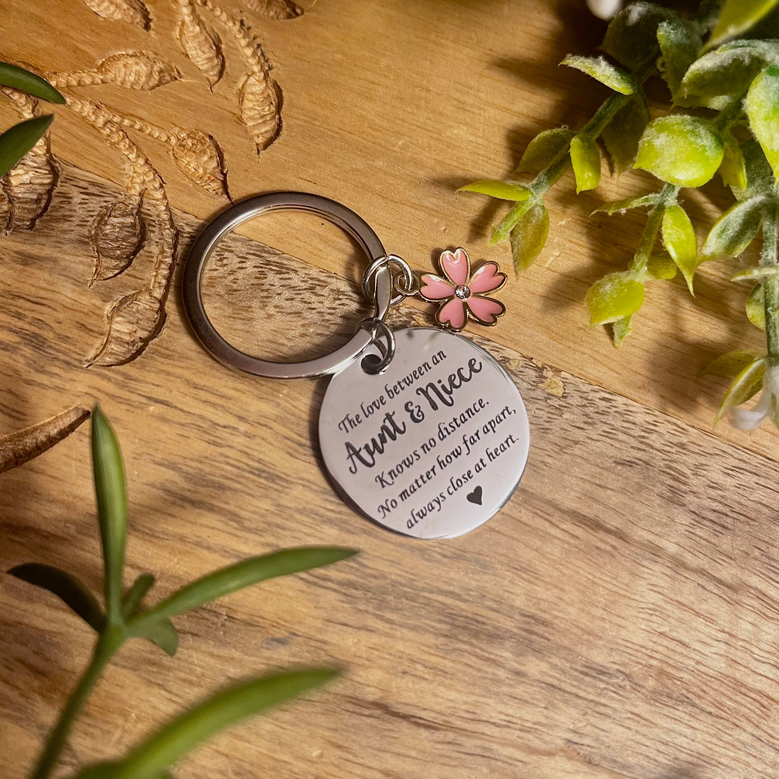 'The love between an Aunt and Niece' Novelty Silver Keyring