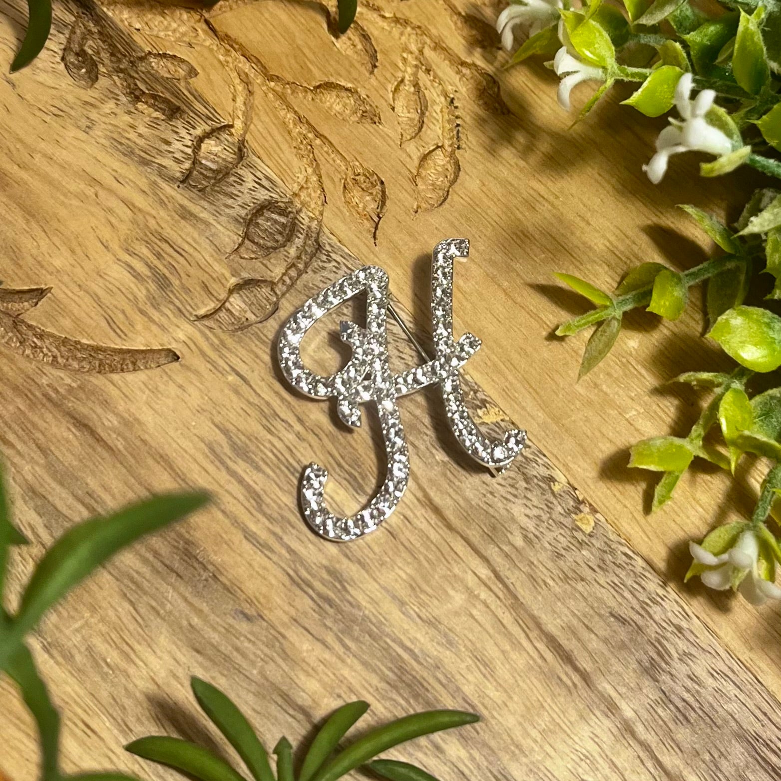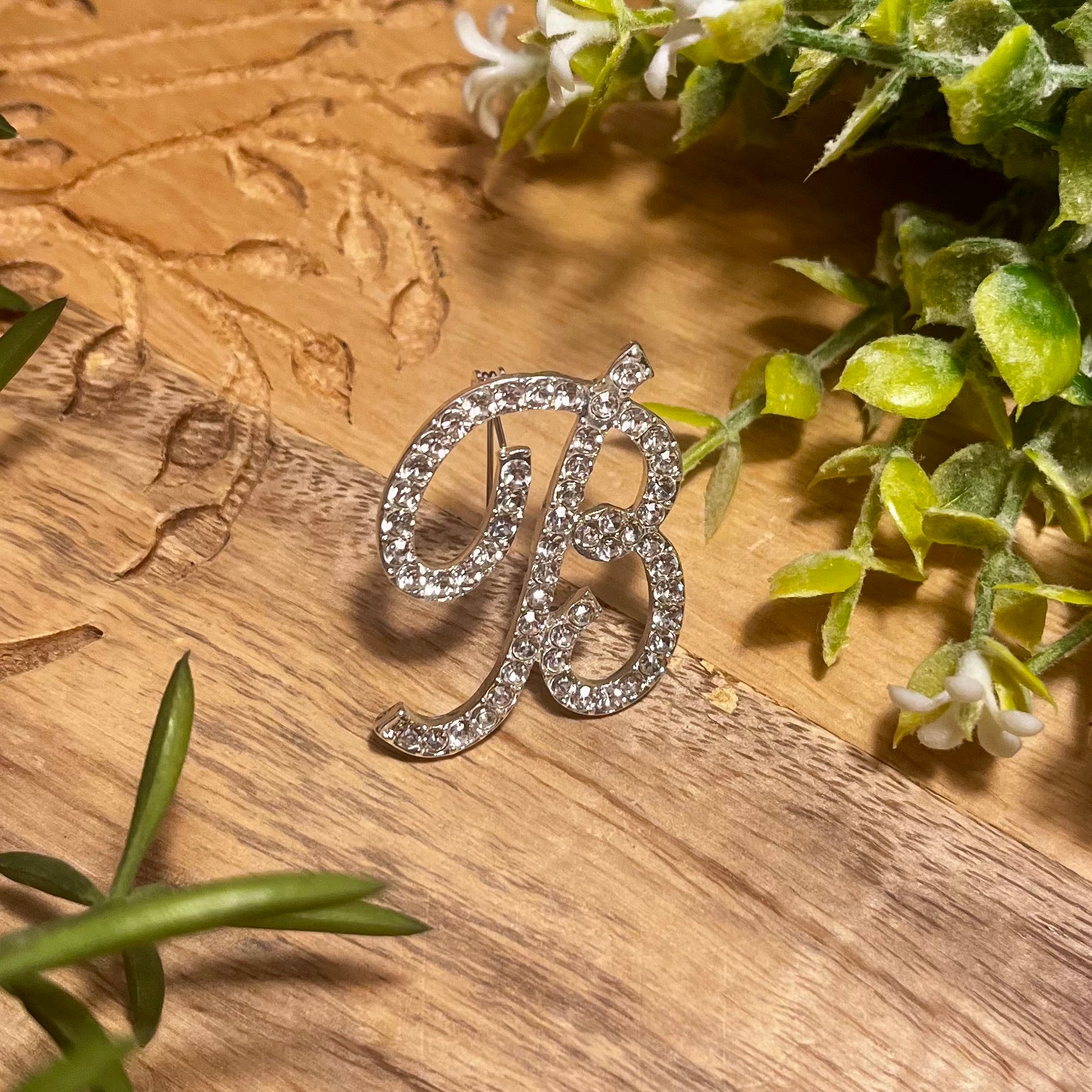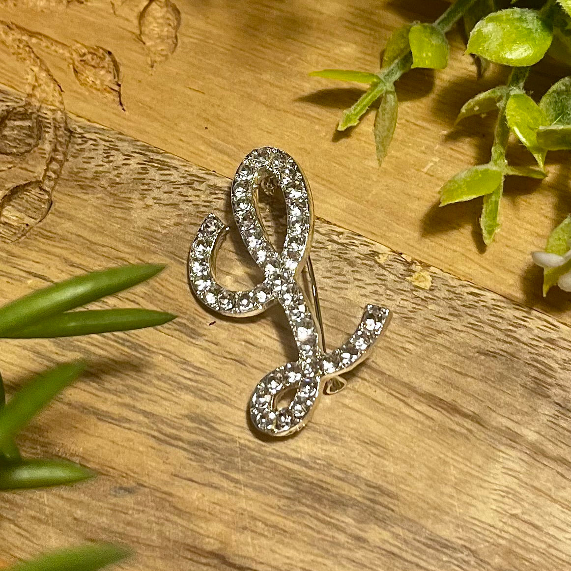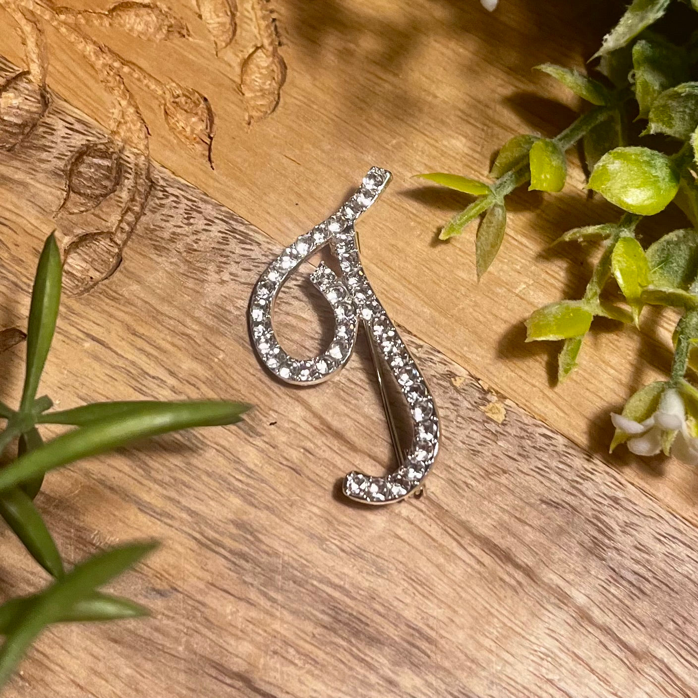 This initial brooch is a stylish way to pin your scarf, looks great on the lapel of a jacket or is a gorgeous way to personalise your favourite little black dress.