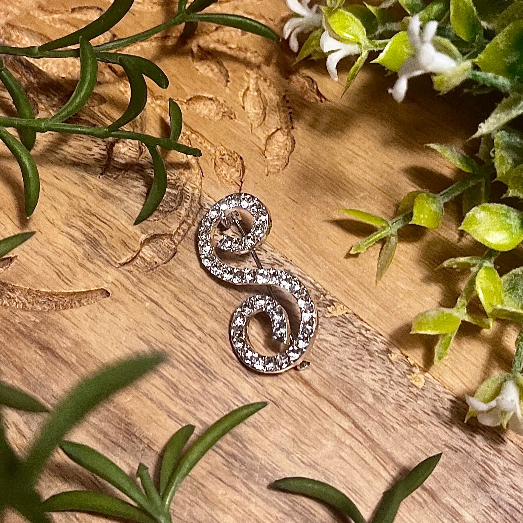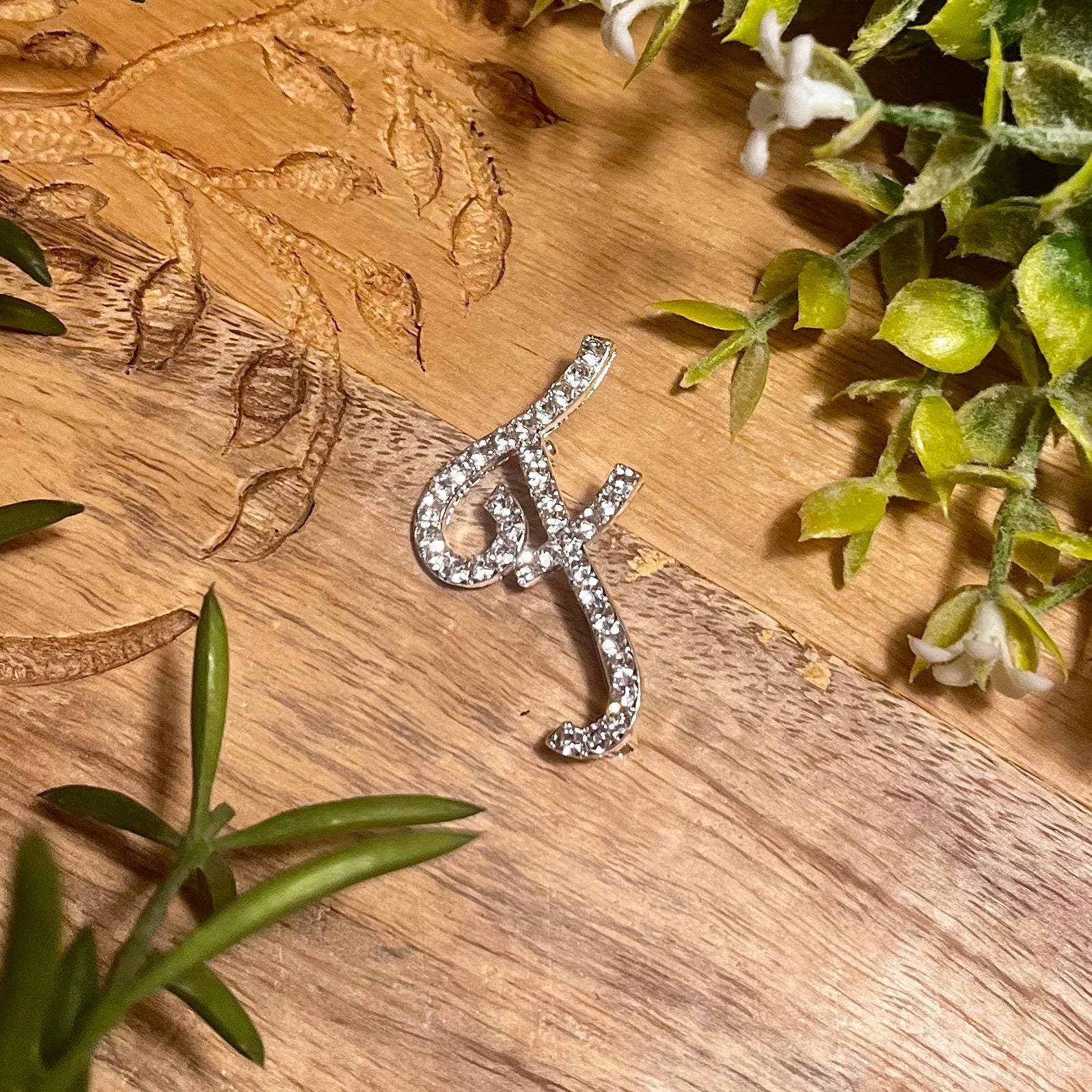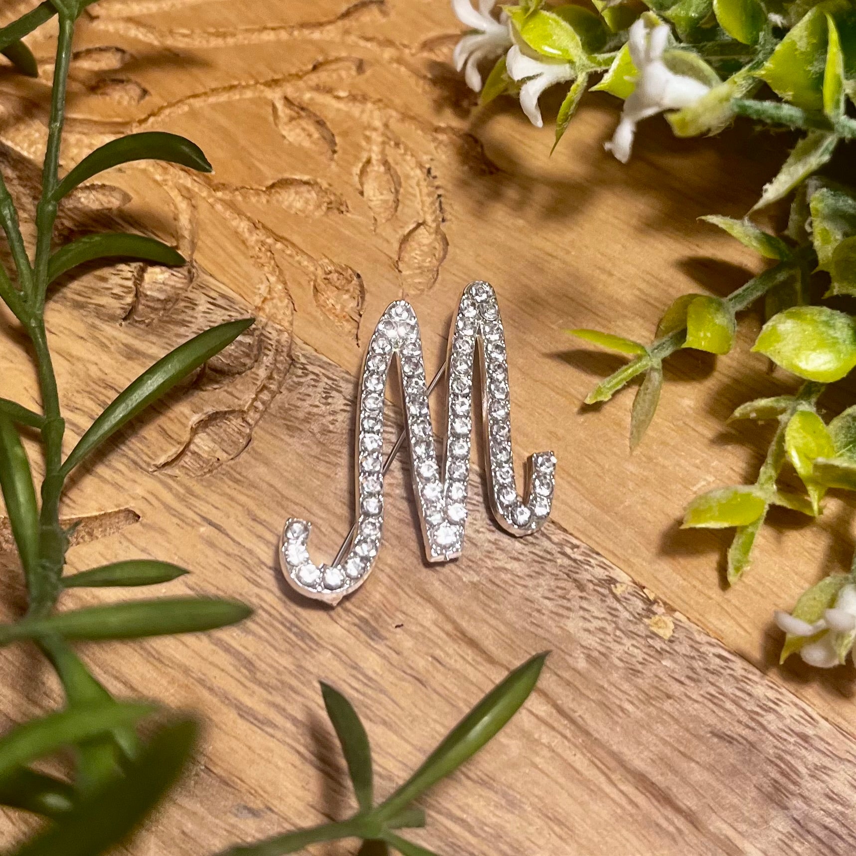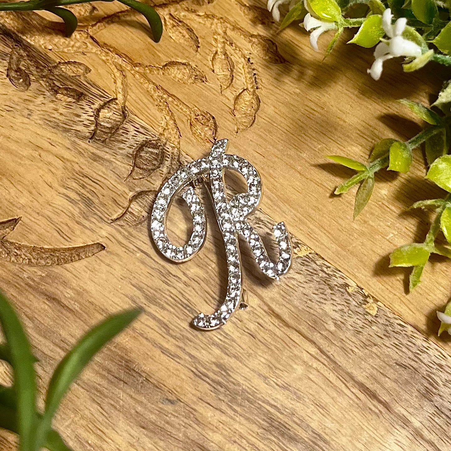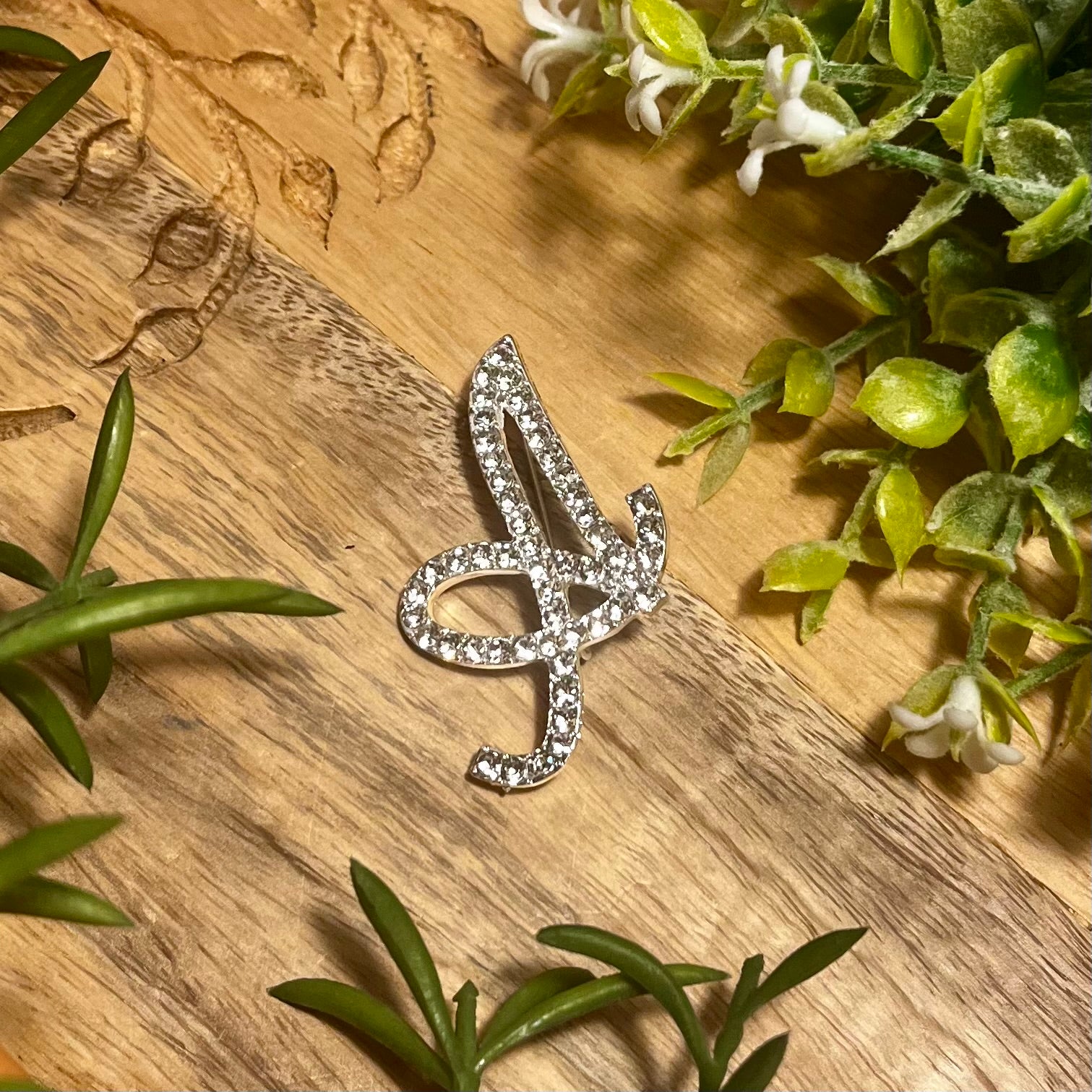 This initial brooch is a stylish way to pin your scarf, looks great on the lapel of a jacket or is a gorgeous way to personalise your favourite little black dress.
