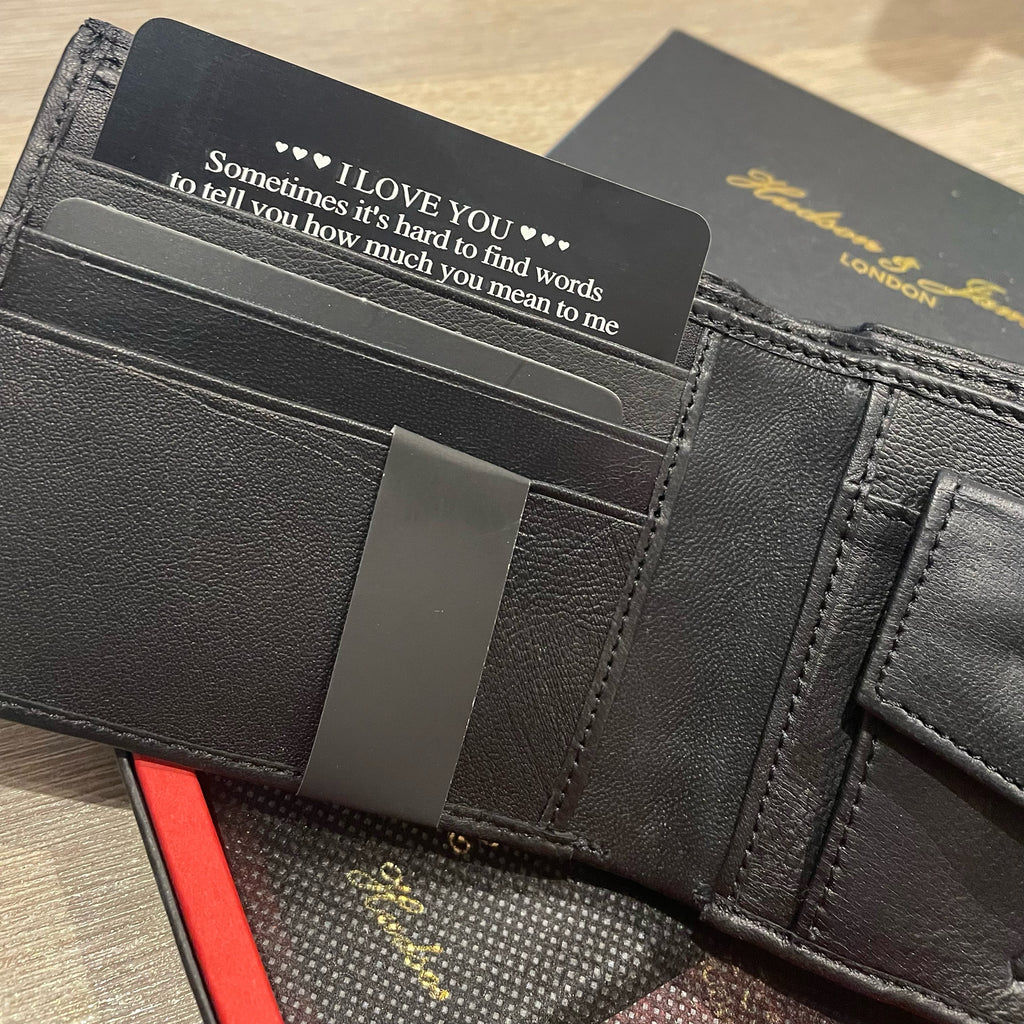 A metal credit card sized keepsake ideal to keep in a wallet or purse to be a daily reminder of your love for another.