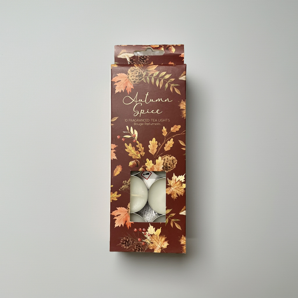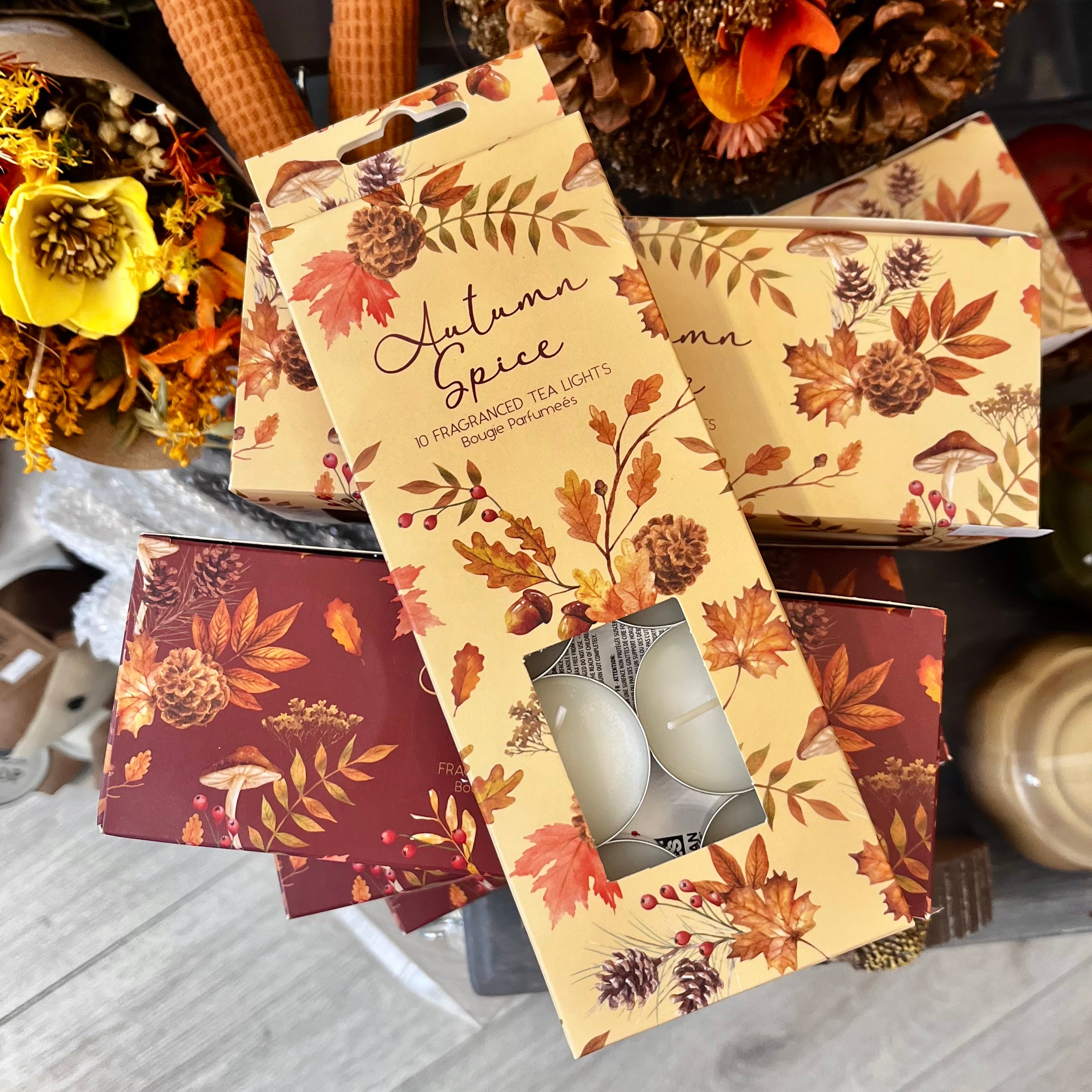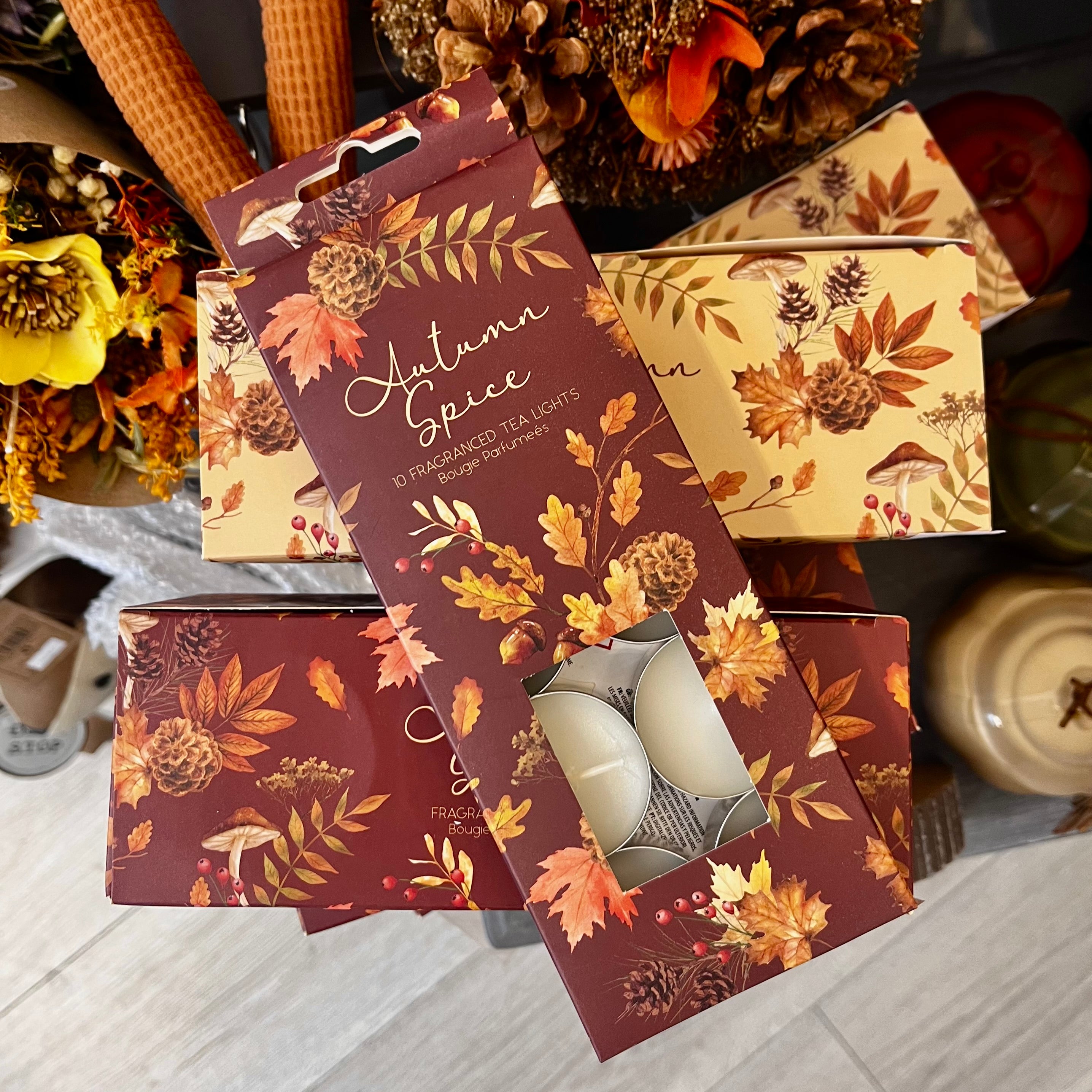 Light up your evenings and embrace Autumn vibes with these pack of 10 tea lights the perfect addition to create a cozy and inviting atmosphere in your home this season.