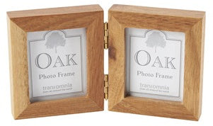 A classic cute mini folding twin photo frame with a beautiful chunky oak finish frame.