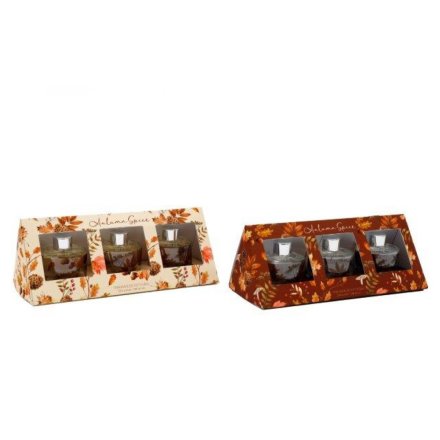 The glass bottles feature a beautiful brown and orange design, reminiscent of the changing leaves of autumn.