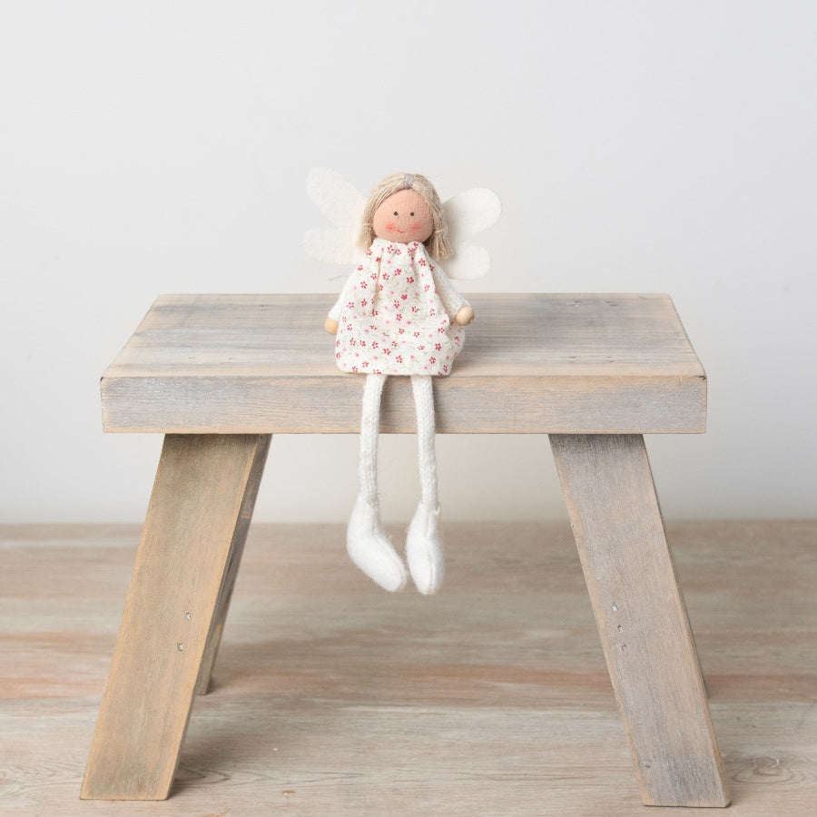 A charming knitted angel decoration with a ditsy floral dress and felt wings.