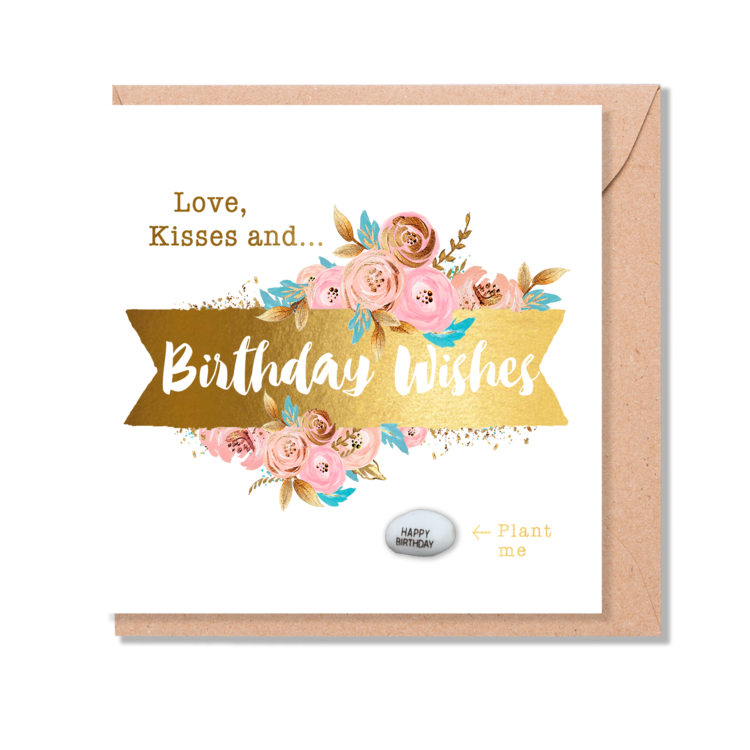 A floral designed Birthday Card finished with contrasting envelope. with an extra sprinkle of magic as it includes an Engraved Magic Growing Bean.