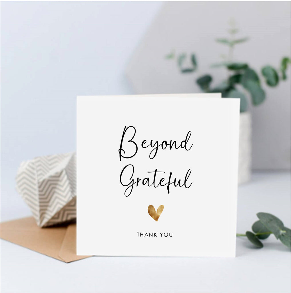 A special thank you card featuring the heartfelt words 'Beyond Grateful - Thank You'