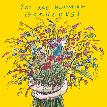 A greeting card displaying arms wrapped round a bunch of flowers with 'You are Blooming Gorgeous' writing above. A great card perfect for multiple occasions.