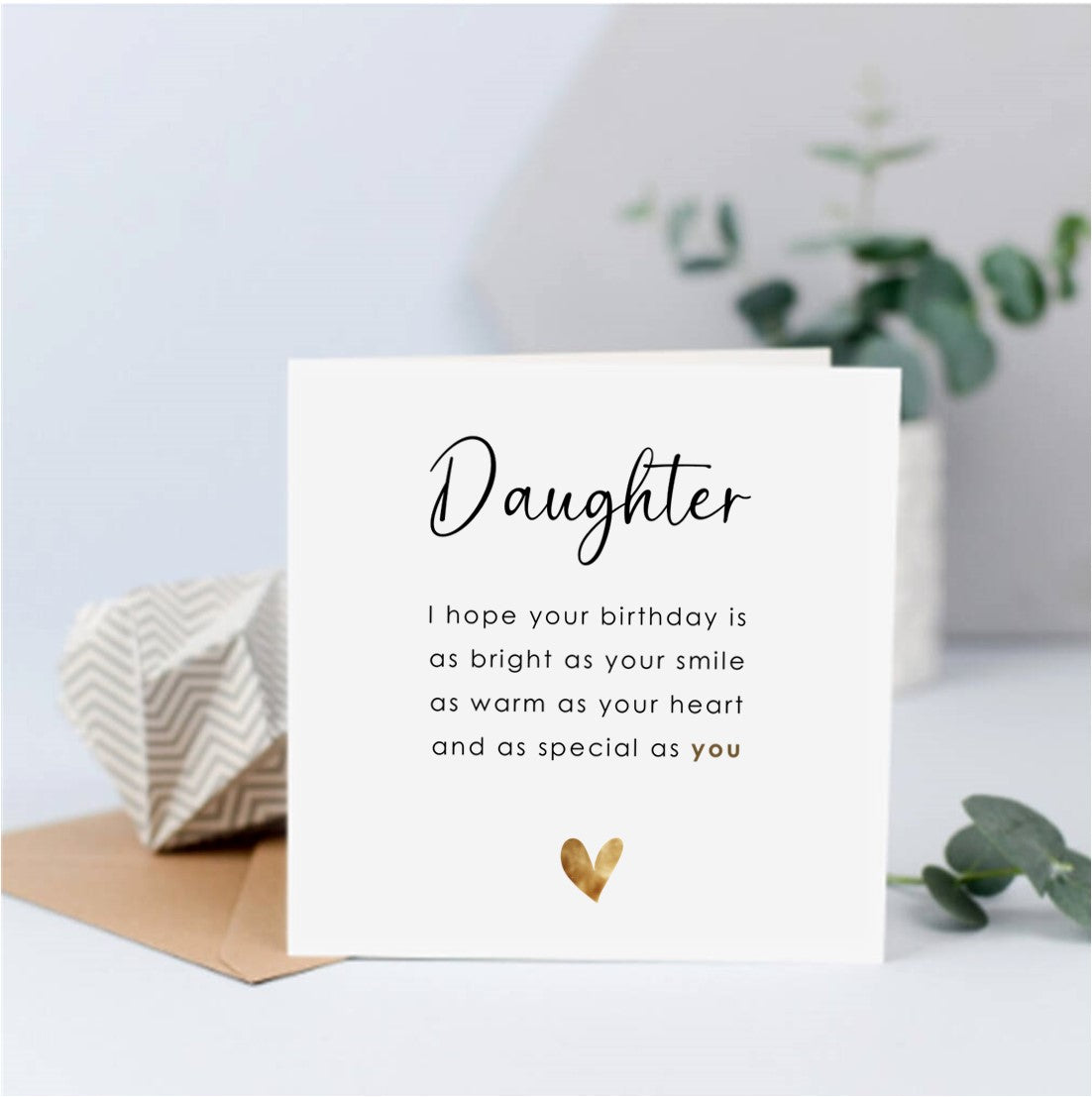 A card for a special daughter featuring the heartfelt words 'I hope your birthday is as bright as your smile, as warm as your heart and as special as you'