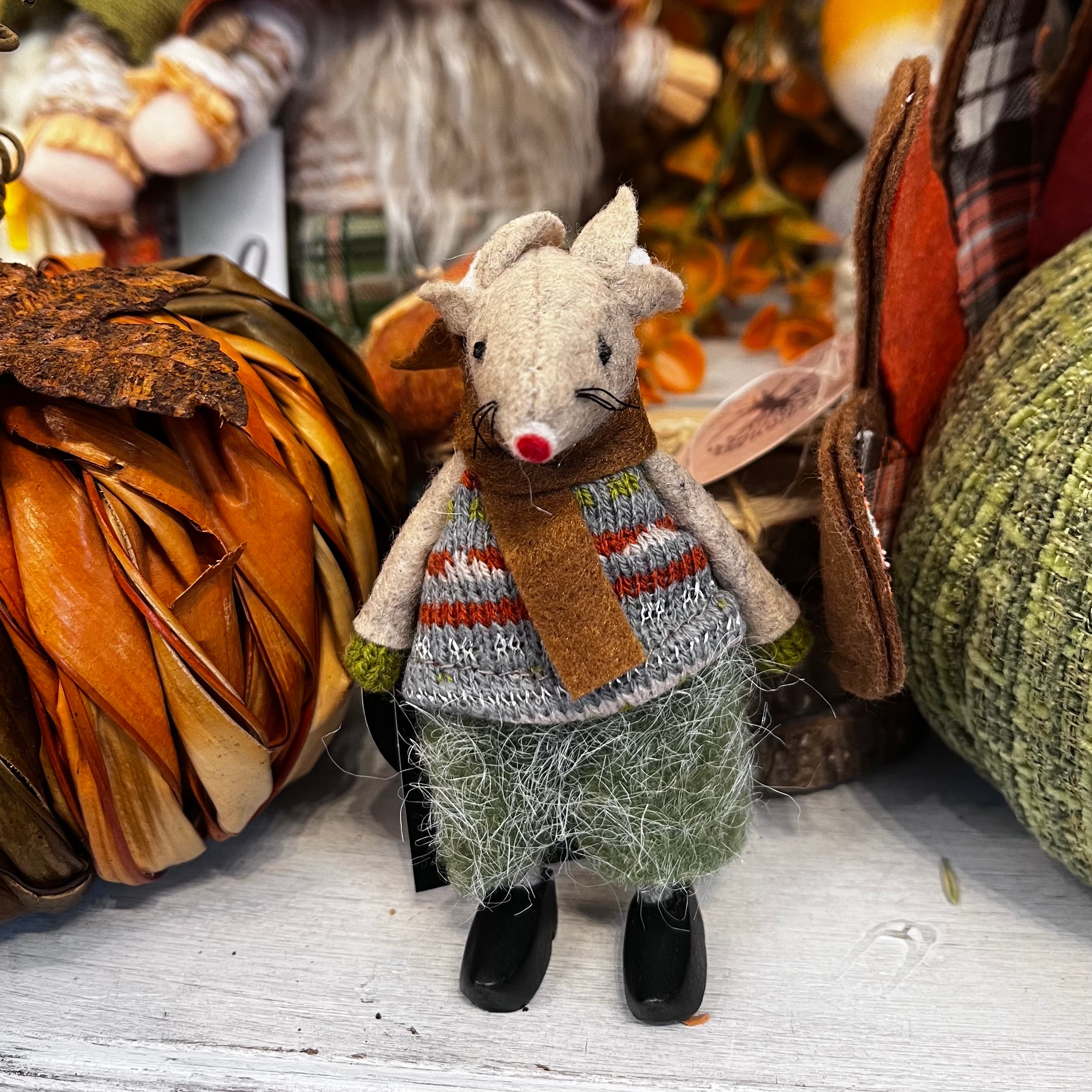 An gorgeous woodland inspired fabric mouse, complete with a cosy jumper and black cloggs. A wonderful little ornament that will add a touch of woodland charm to any home setting