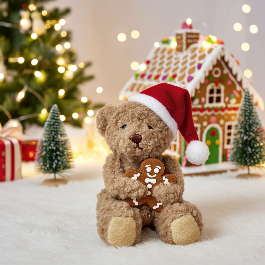 An adorable little furry friend that will add a touch of warmth and cuteness to any room! With those big brown eyes clutching onto their gingerbread, it's hard to say no to them.