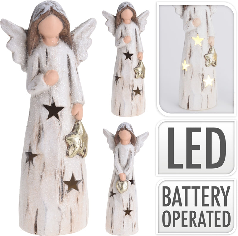 Wooden Angel Ornament With Star Cut Out Designs And LED Lights Inside The Shine Through The Stars,