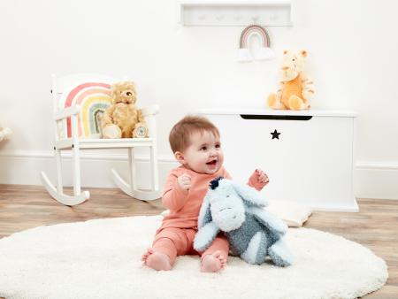Winnie the Pooh's beloved friend, Eeyore, has a special place in so many hearts, and this soft and squishy Cuddly Classic Eeyore toy, inspired by A.A Milne's character from the heart-warming stories, Tales from Hundred Acre Wood, makes the ultimate playtime, storytime and bedtime, snuggle companion for any little one.  This 25cm baby soft and cuddly Eeyore soft toy, inspired by A.A Milne's sad-looking grey donkey character, has been created using only the softest, textured plush fabric with embroidered features, to encourage that special bond with baby or child and create fond memories that will last a lifetime.  Eeyore has also been produced in a way that is sensitive to the environment, with stuffing made from approximately five recycled plastic bottles and the packaging is made from sustainably sourced material.  This luxury soft toy will make a treasured and adored gift for babies and children of all ages, helping to make special memories as this adorable Cuddly Eeyore becomes part of the family.