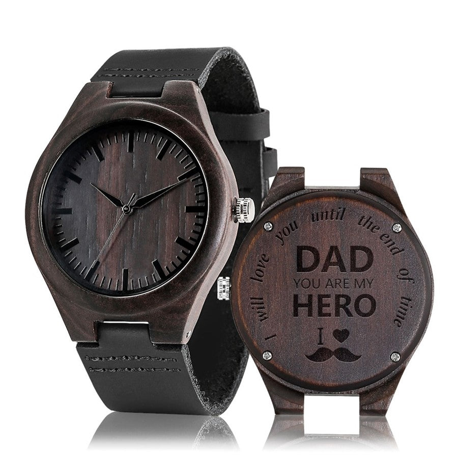 Dad you are my Hero - Quartz Wooden Engraved Watch