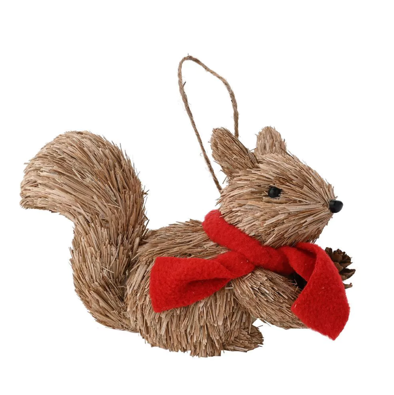 Country Living Natural Handmade Hanging Squirrel In A Scarf With A Pinecone