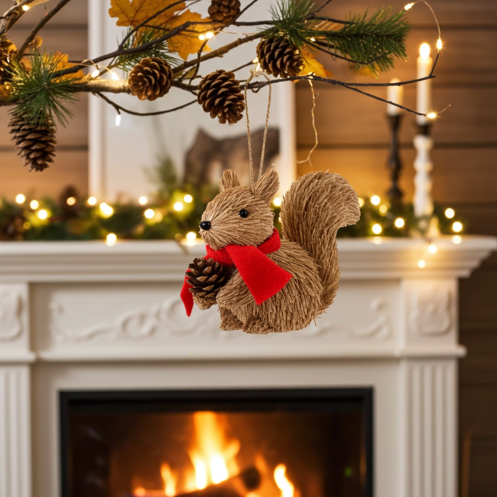 Perfect for adding a touch of rustic charm to any room, this little fellow is crafted from natural materials and wears a charming red scarf.