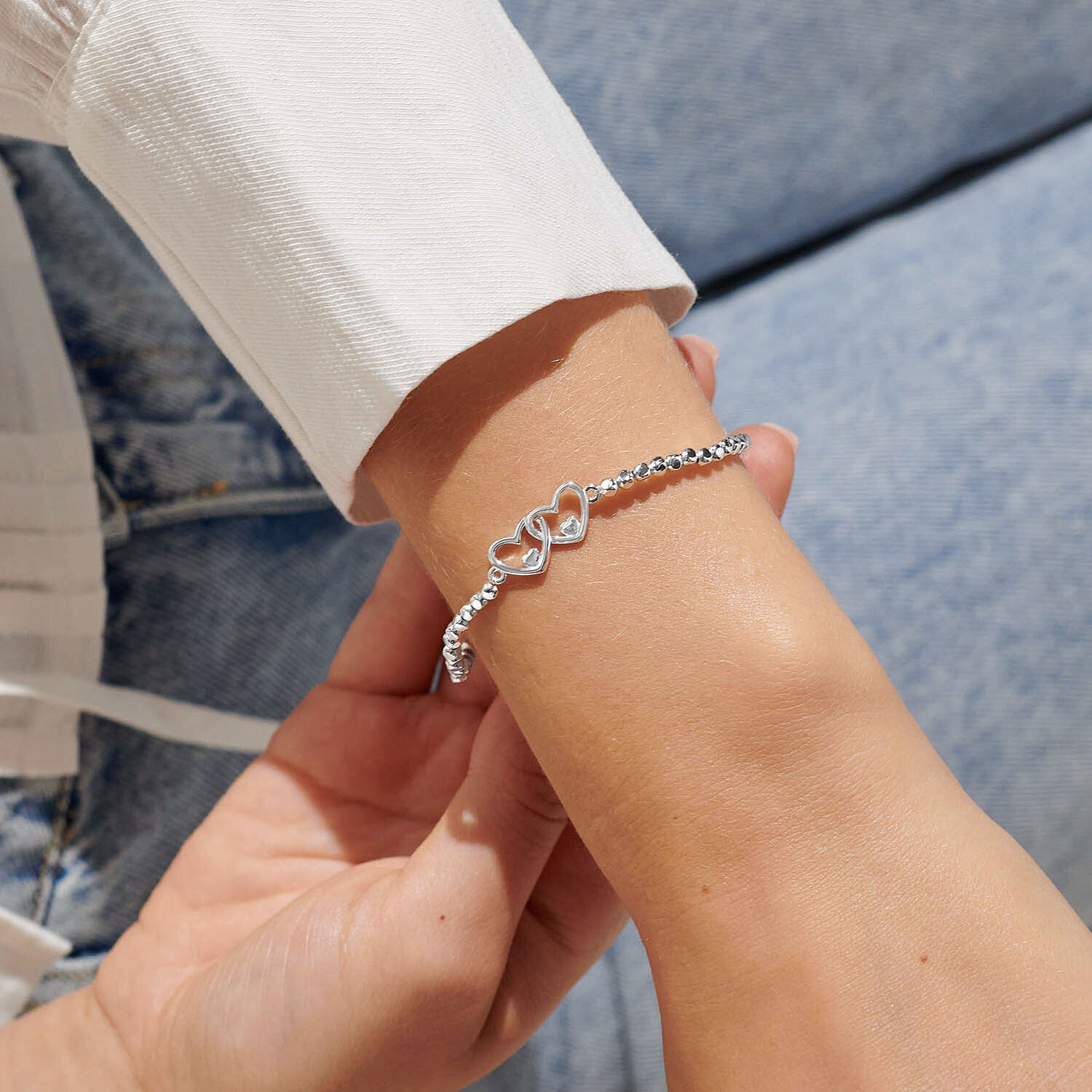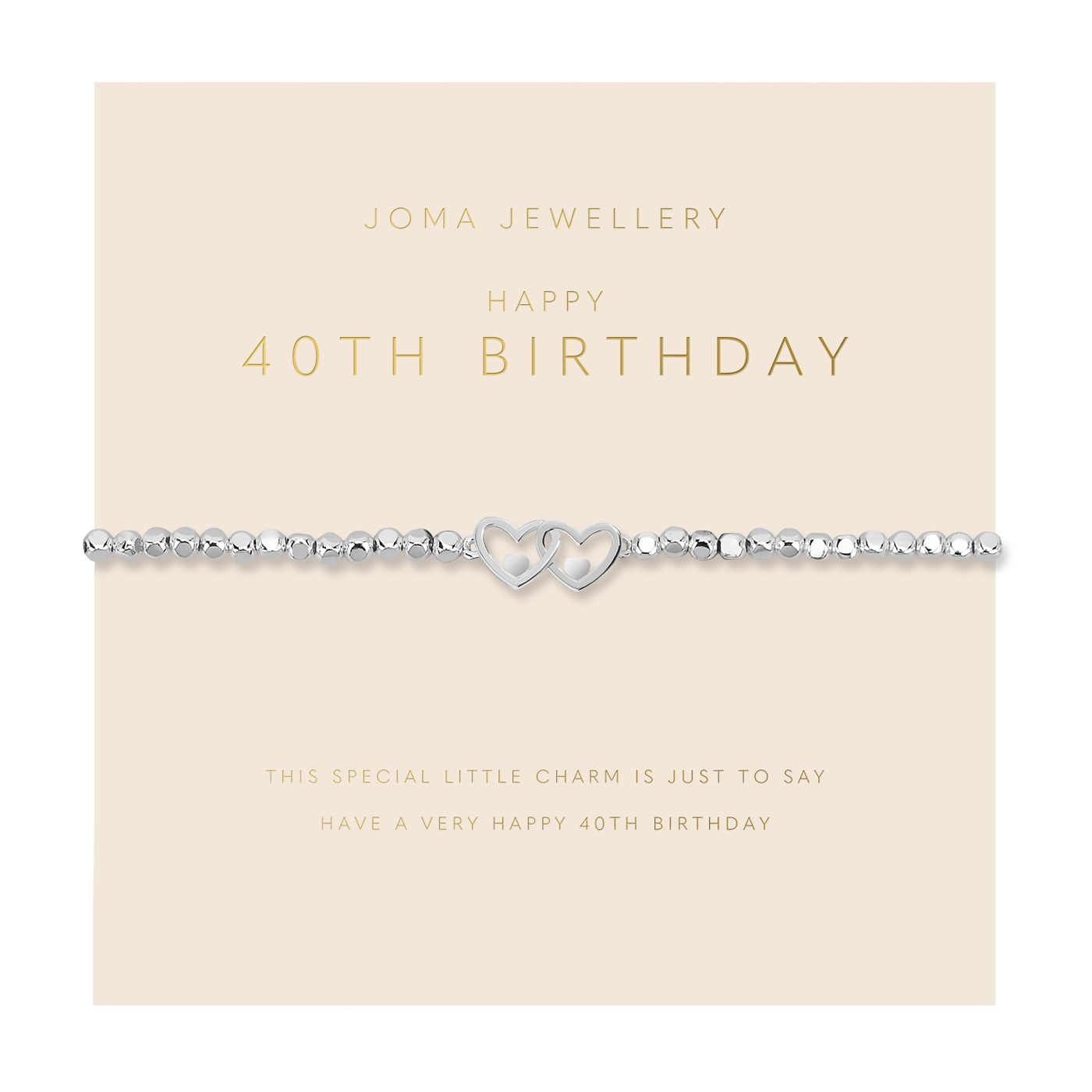This classic silver-plated hammered bead design is complete with an interlocked silver-plated heart-shaped charm. Wrapped around one of Joma's signature sentiment-stamped blush pink cards reading 'This special little charm is just to say have a very happy 40th birthday', it's perfect to be gifted on its own or alongside another of Joma's Forever Yours styles for the cutest mix-and-match moment.