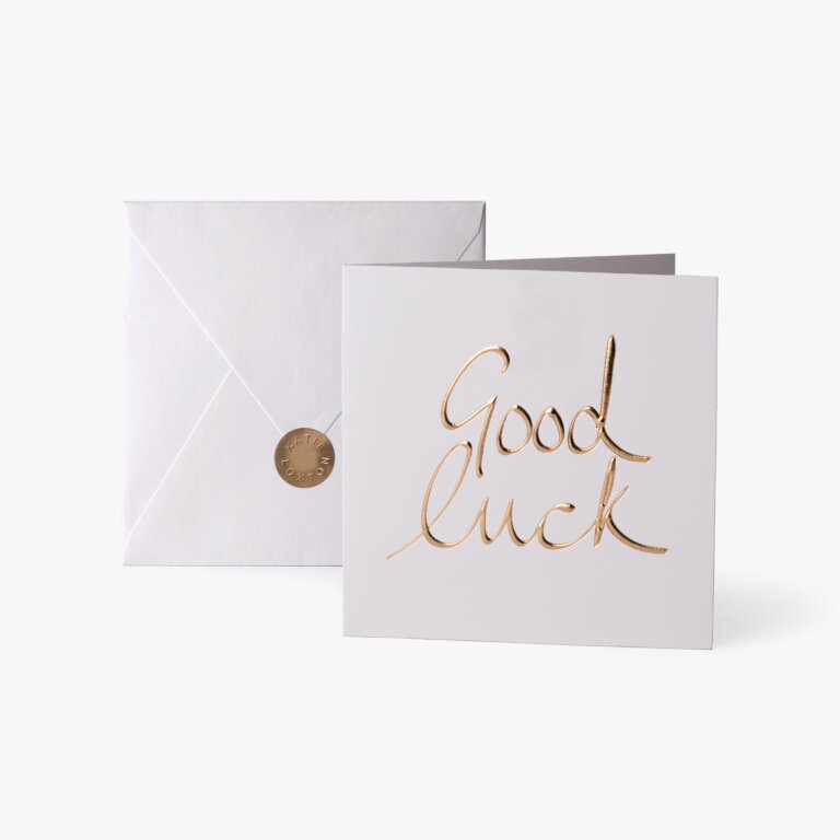 The Katie Loxton 'Good Luck' Greeting Card is the perfect way to send well wishes to someone special. Finished with gold foil and beautiful embossing, it’s sure to impress!