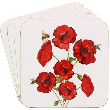 Introducing the Bee-tanical Poppy Coasters Set 4, a beautiful addition to any home.
