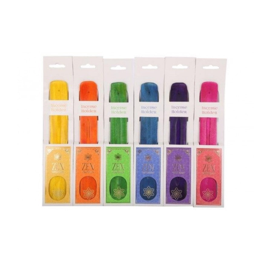 Zen Incense Holder In 6 Assorted Coloured Designs with Floral Design On One End. Designs Priced Individually. Design picked at random.
