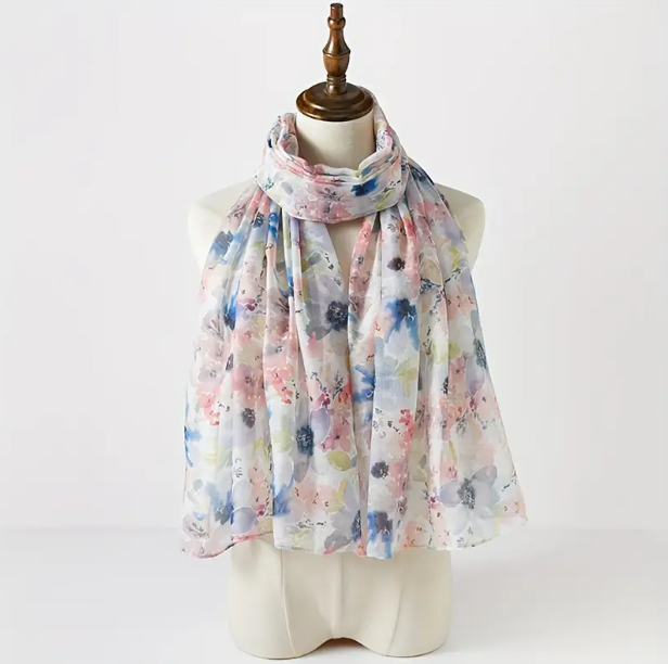 Bring a burst of colour and the essence of spring into your wardrobe with this bright and cheerful floral scarf!