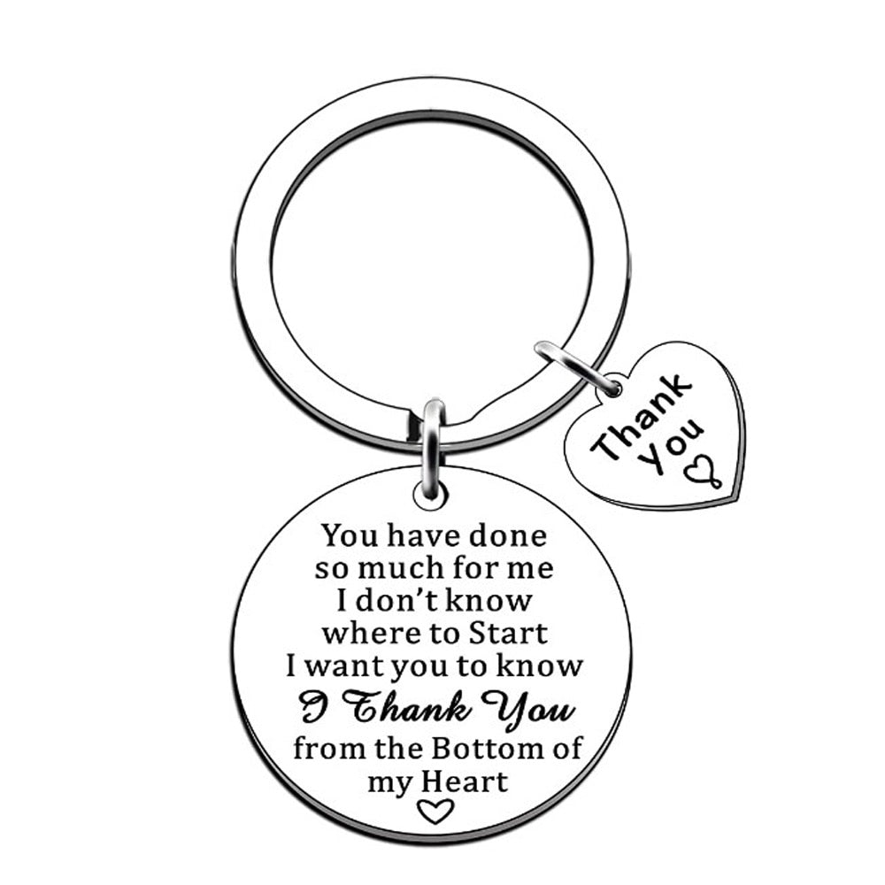 A Thank You Metal Keepsake Keyring with engraved disc that reads - You have done so much for me I don't know where to start, I want you to know I thank you from the bottom of my heart. An additional heart pendant is engraved with Thank You