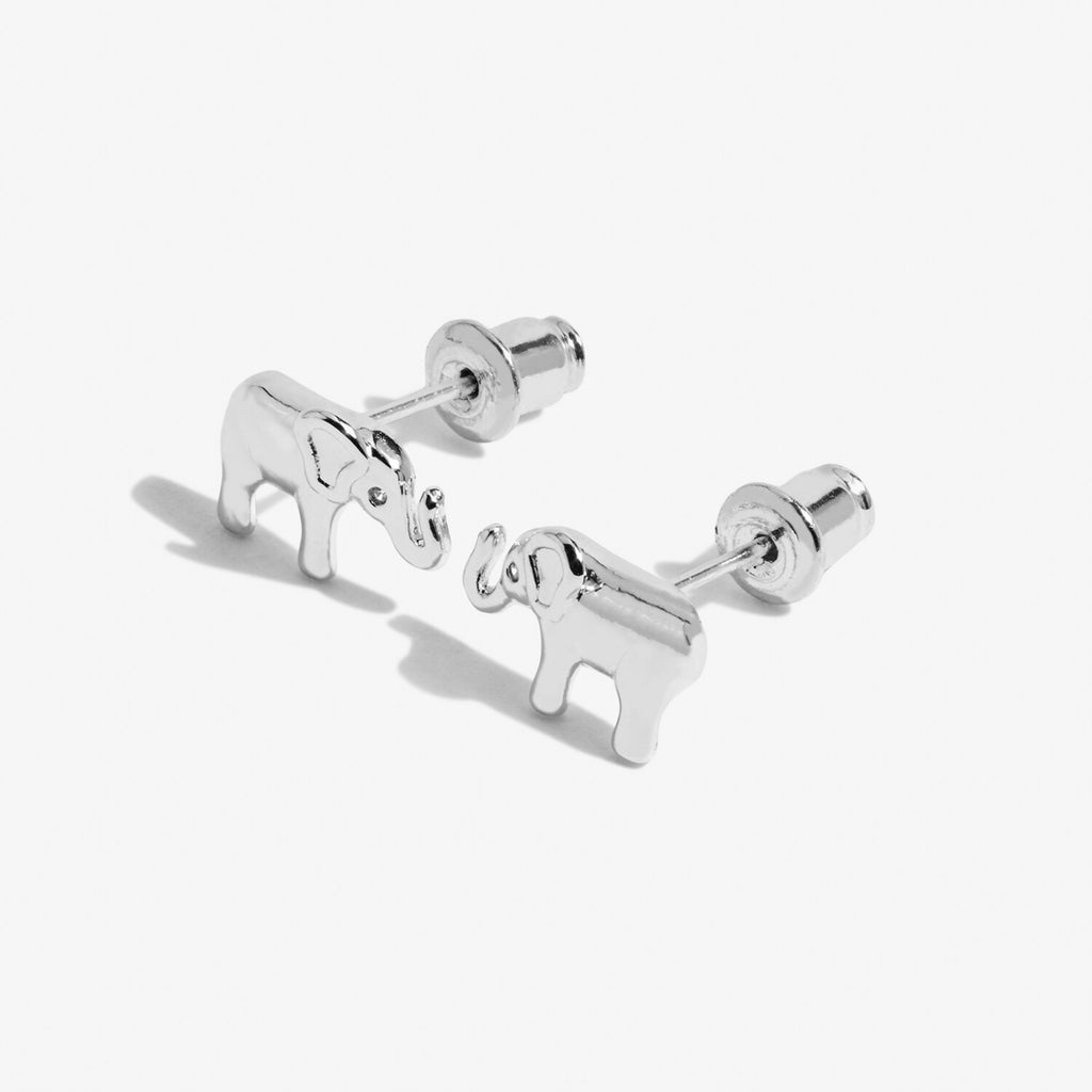 These A Little 'Lucky Elephant' Earrings are filled with meaning and sentiment. Featuring a silver-plated design, adorable elephant-shaped pendants, and dainty butterfly backs. Perfectly presented on one of Joma's signature stylised boxes and framed by a sweet sentiment 'Two little elephants for you today bringing a little luck your way'.