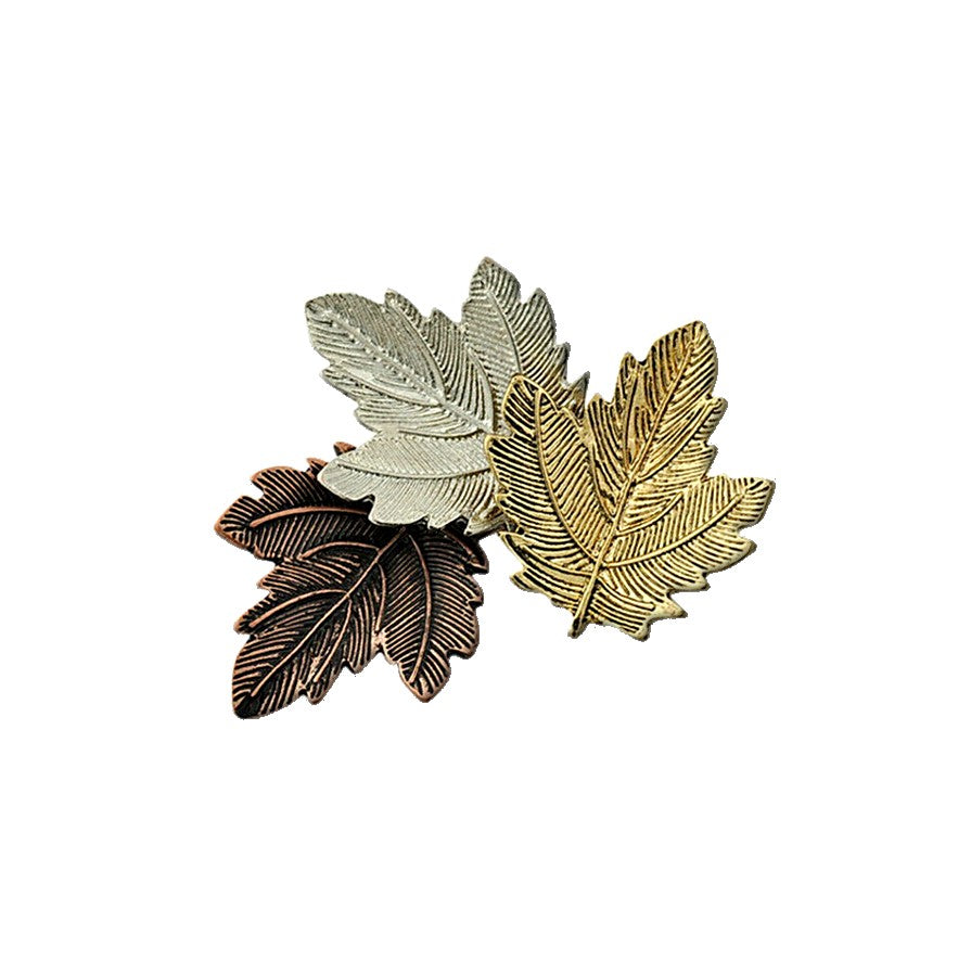 A brooch in the design of three maple leaves finished in bronze, silver and gold colouring. A statement piece that can represent the season of autumn, a beautiful array of leaf colours as they fall in this season.