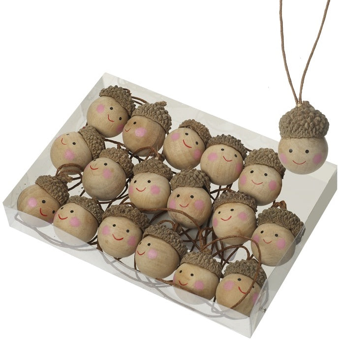 A set of 18 mini acorn head decorations. A charming child friendly decoration for your Christmas tree!