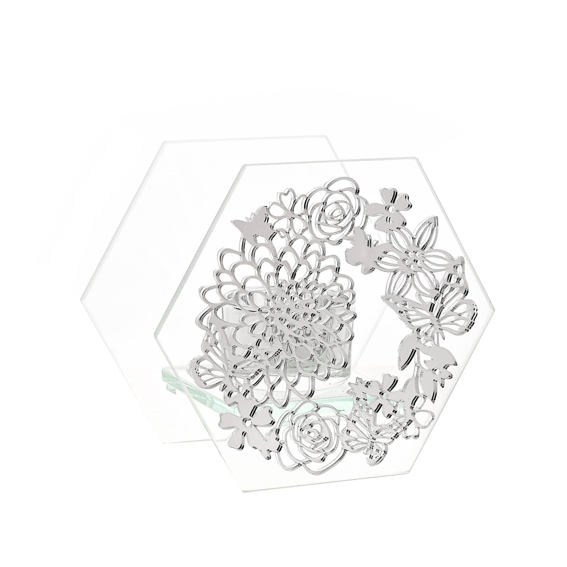 Sophia Mirrored Floral Pattern Tealight Holder