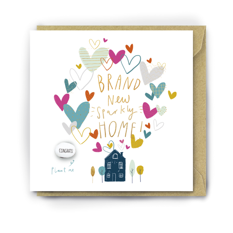 A card filled with so much love to congratulate on a new chapter of a brand new sparkly home finished with a contrasting envelope. This card has an extra sprinkle of magic as it includes an Engraved Magic Growing Bean.