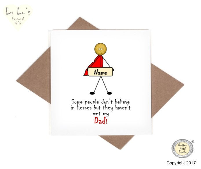 With heart-warming text - ‘Some people don't believe in heroes but they haven't met my dad' Text can be adapted if required.