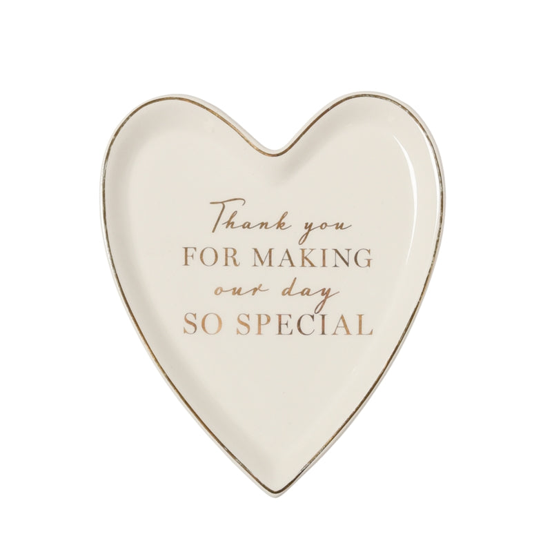 Ceramic Heart Trinket Dish With Gold Foil Rim And Text On The Front