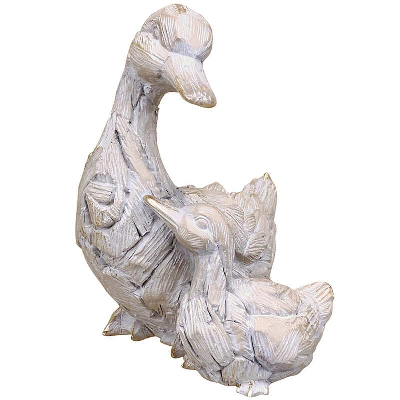 Resin Animal Statue With a Driftwood Design Finish In a Highly Detailed Duck And Baby Design