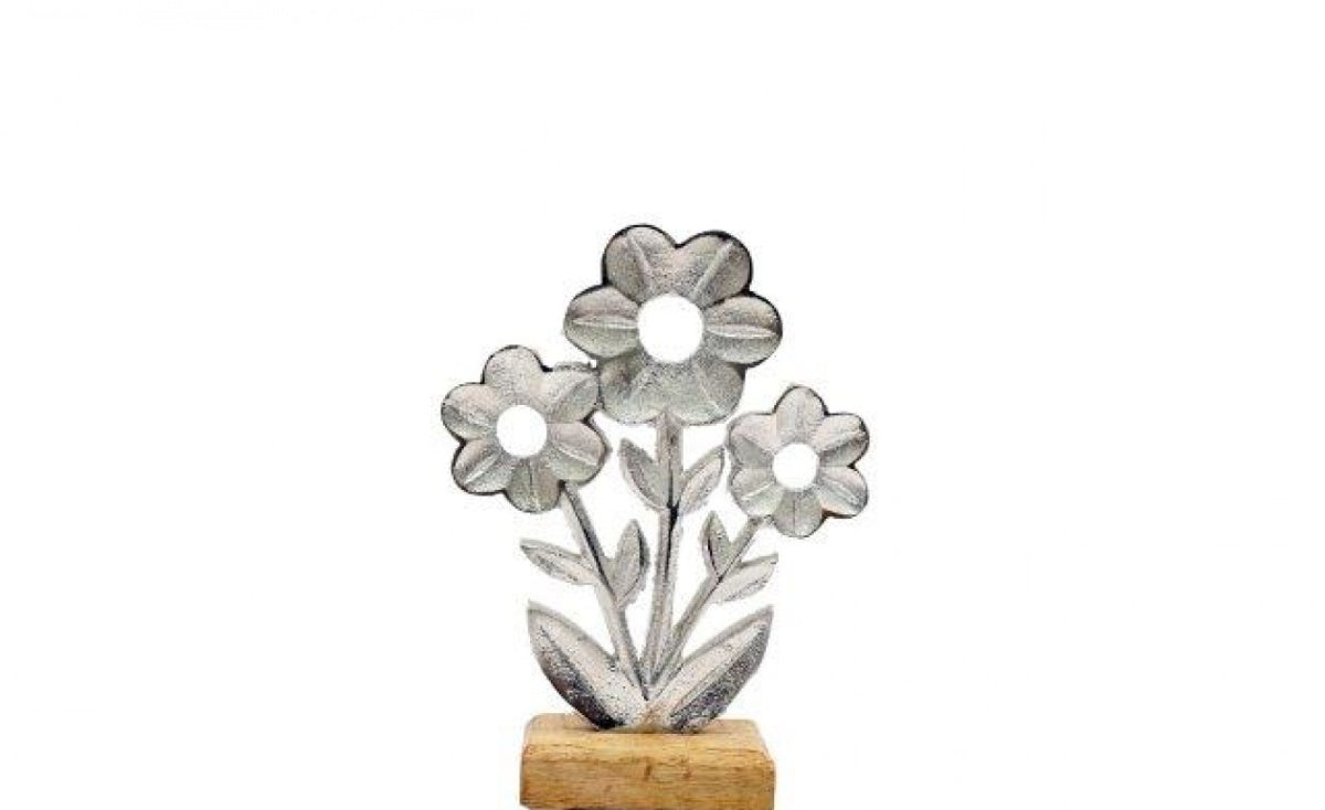 This lovely aluminium flower collection on a chunky wooden base is perfect for displaying in the home all year round.