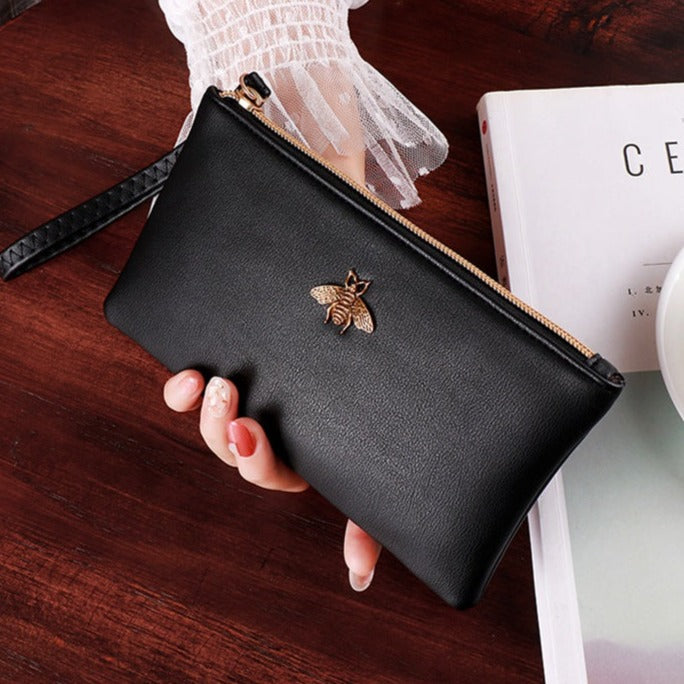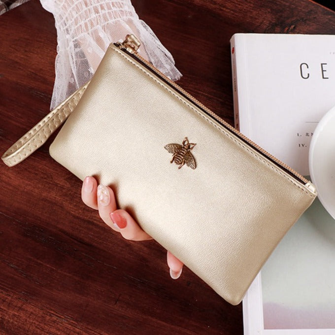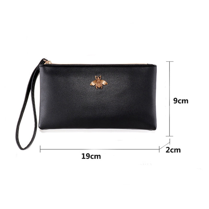 The luxury golden bee pendant to the front makes this fit for a Queen Bee! 19cm x 9cm is the perfect size for a phone and other essentials.