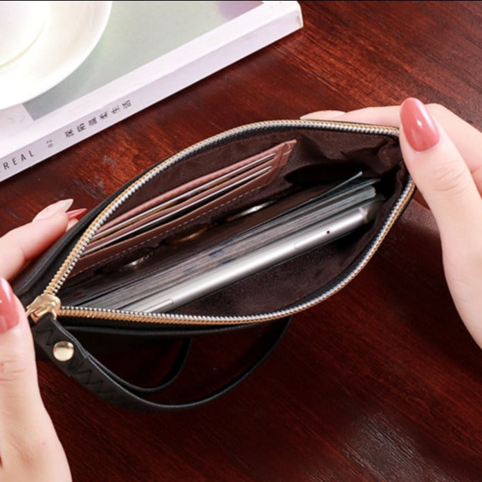 This Stylish Wristlet Clutch Bag is available in a range of elegant colours and finished in a soft leather with inner lining that features a number of inner pockets for bank cards. A wrist strap also makes this the perfect accessory when on the move, on an evening out or to home your essentials.