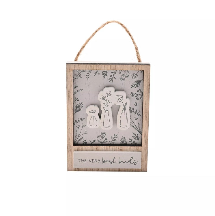 Unveiling our MULTI 6 Moments Mini Frame Plaque - Best Buds, a charming keepsake that fuses nature with whimsy. The wooden plaque showcases a delightfully intricate black and white illustration of three mushrooms nestled amongst assorted flowers, emboldened by the playful statement, "The very best buds".