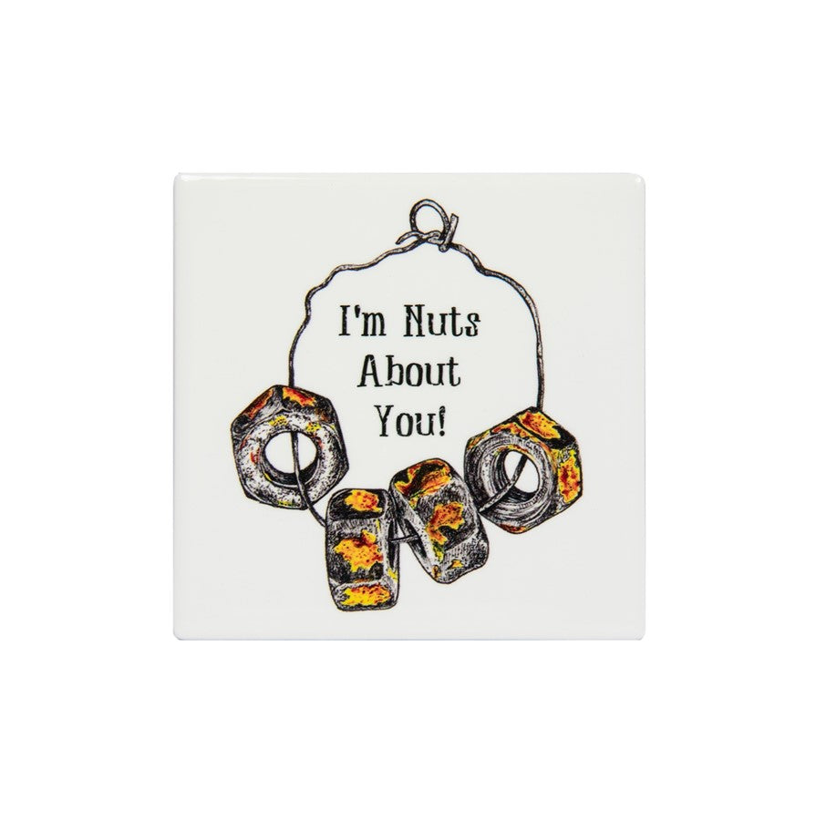 Single Glazed Coaster With Cork Backing With a Comical Design On.