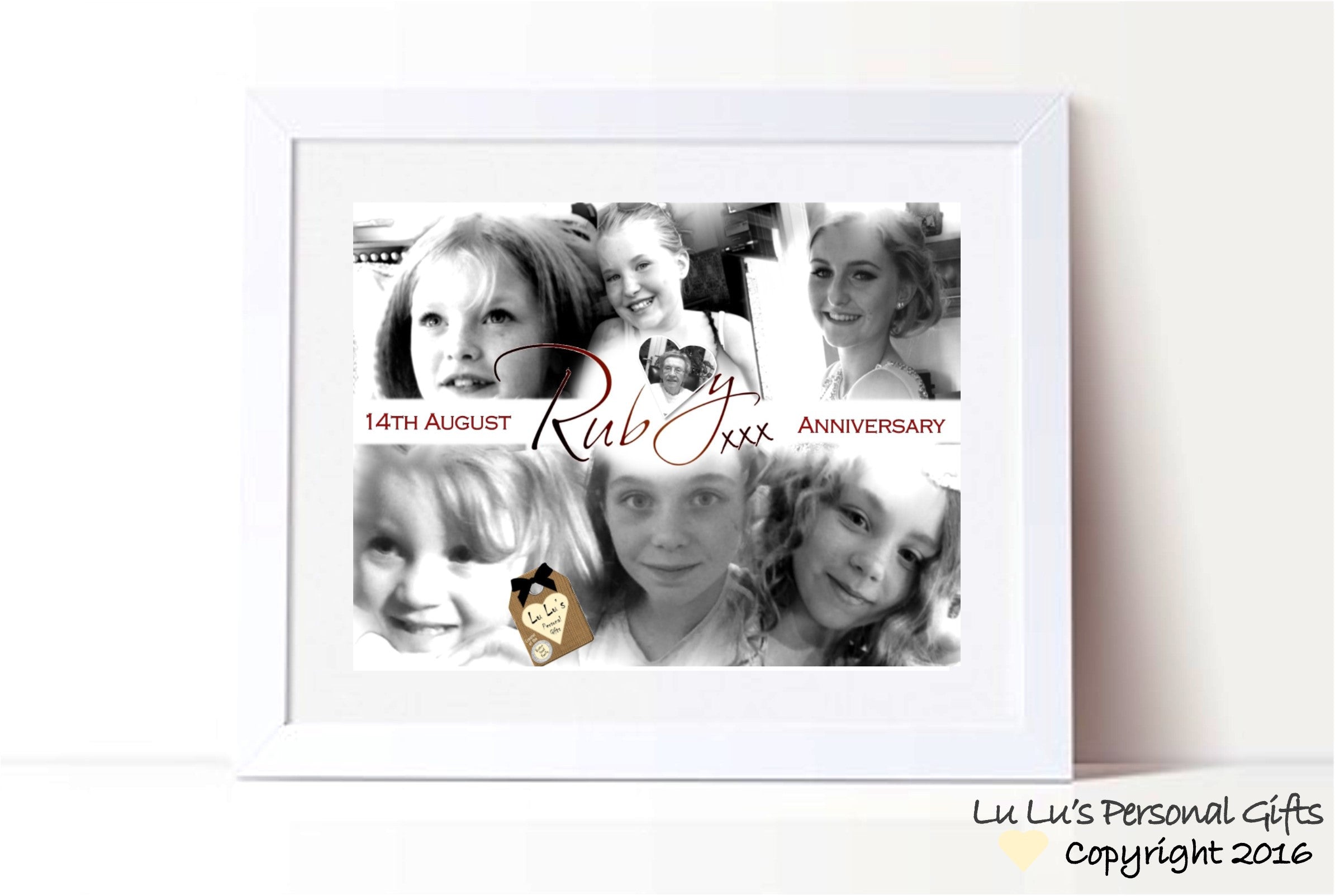 • Your complete gift is then gift wrapped (at no extra cost!) Protective corners are positioned to the frame and clear cellophane wrap is used to protect the gift & finished with gift tag.