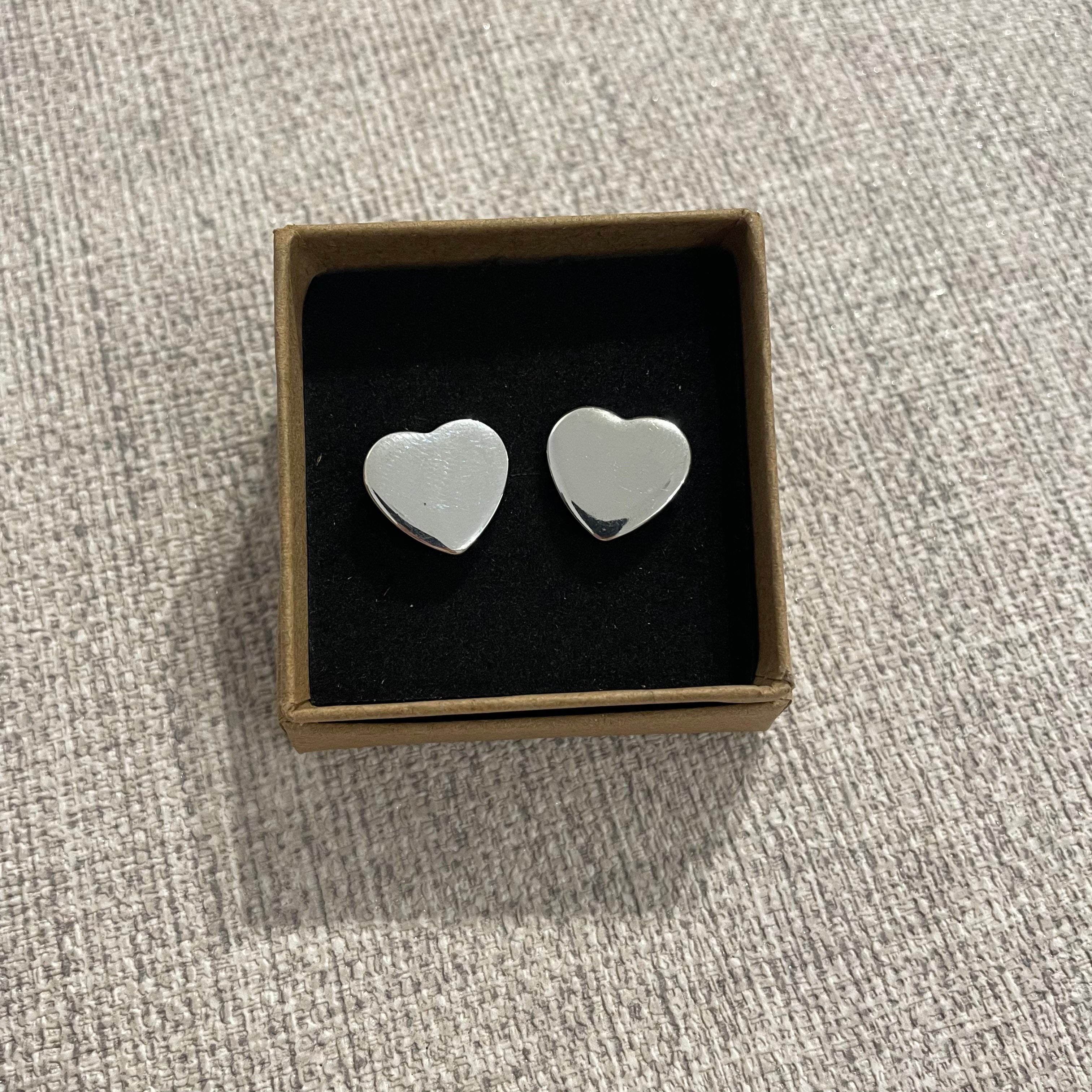 Solid Sterling Silver heart earrings. Stamped S925 to the inside of each earring.