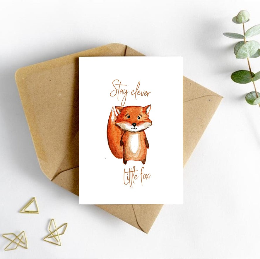 This adorable Stay Clever Little Fox card features a cute water colour fox design making it a great motivational card.