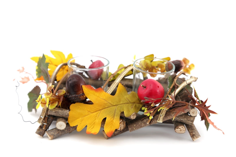 Glass Tealight Holder Nestled In An Assortment Of Artificial Foliage complete with tealight