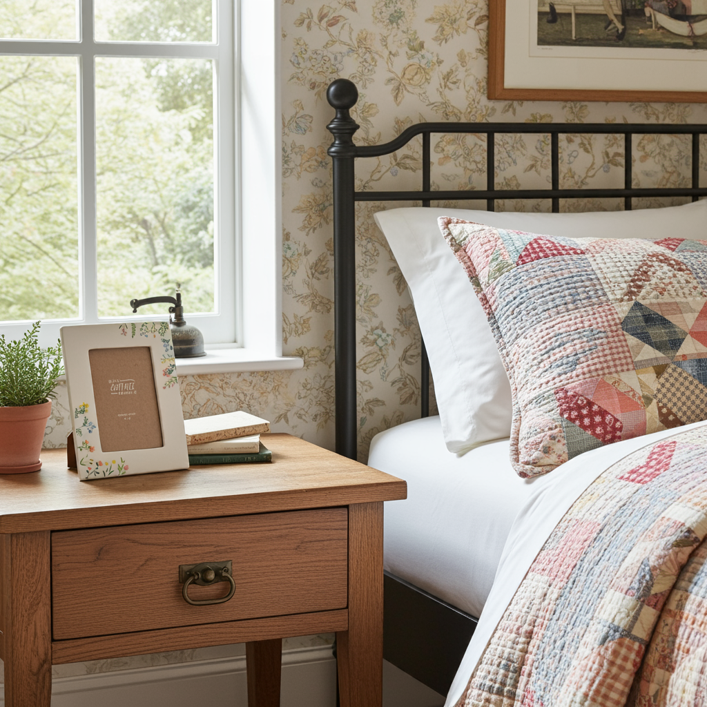 At the top and bottom of the frame, you'll find a charming botanical arrangement of delicate flowers and plants, evoking the peaceful beauty of a cottage garden.