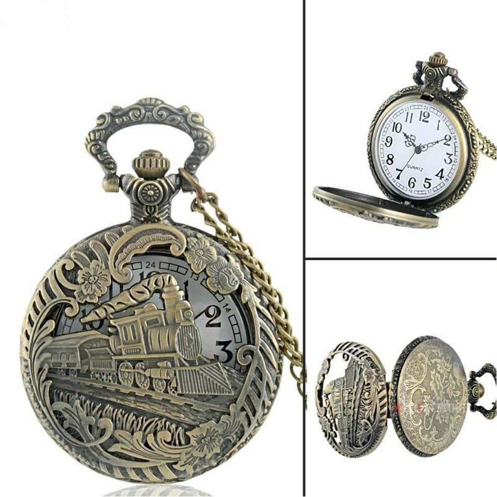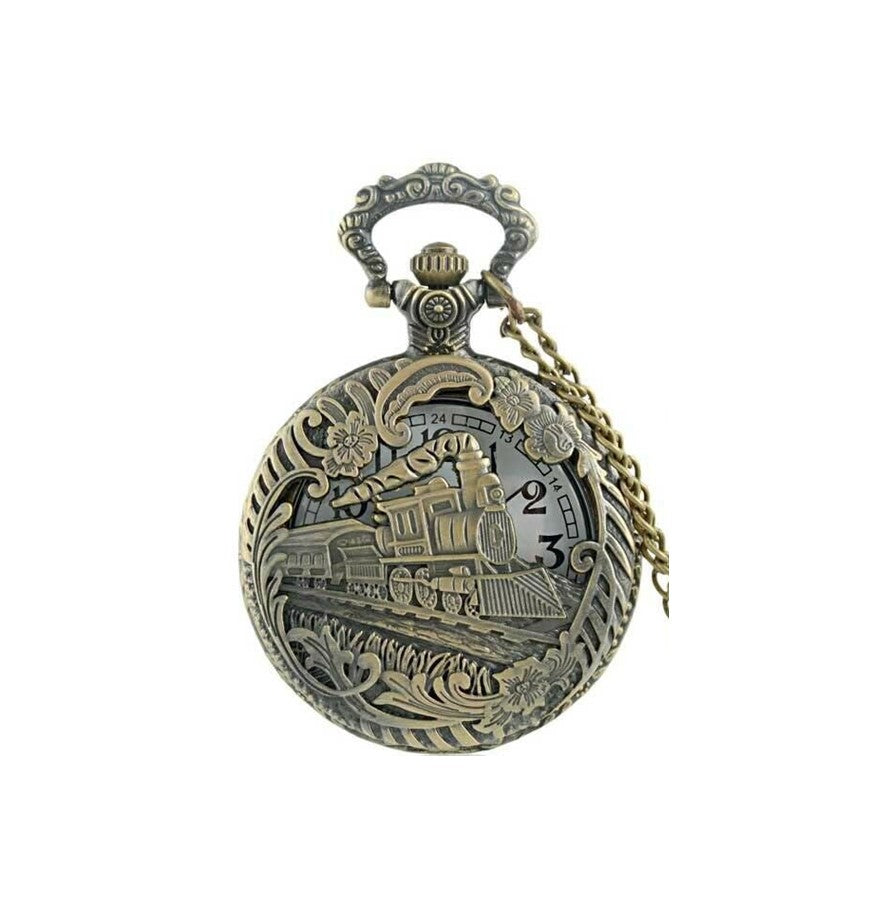 Turn back time to the birth of Steam Trains with this beautifully crafted bronze pocket watch with full Hunter Closure featuring a simple dial with Arabic/Roman Numbers making it easy to see the Time;
