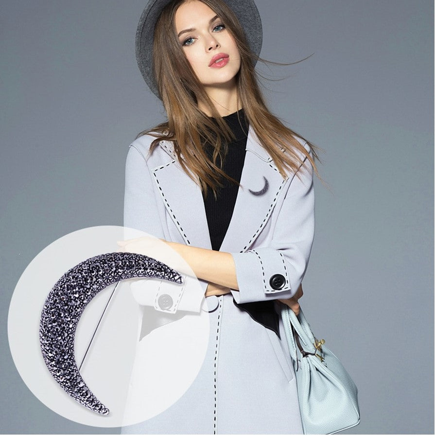 The symbolism of the moon, beautifully designed in a vintage pin brooch with sparkle rhinestone.