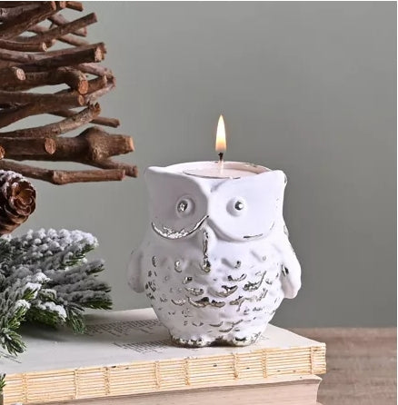A vintage whitewashed owl tea light holder from THE SEASONAL GIFT CO®.