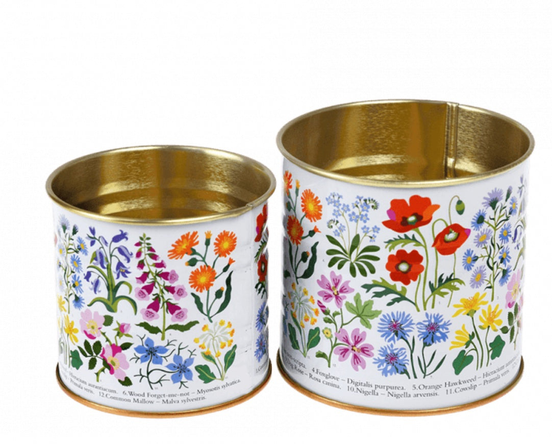 Add a beautiful flourish to your desk and shelves with these mini Wild Flowers storage tins, inspired by vintage botanical illustrations. This set of two tins is the perfect quirky storage for all of life's little essentials.