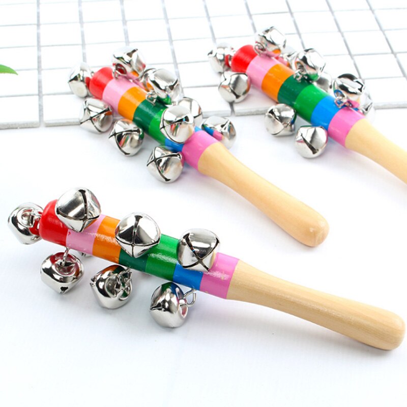 This adorable rainbow wooden rattle jingles & rattles when shaken like a regular bell rattle!